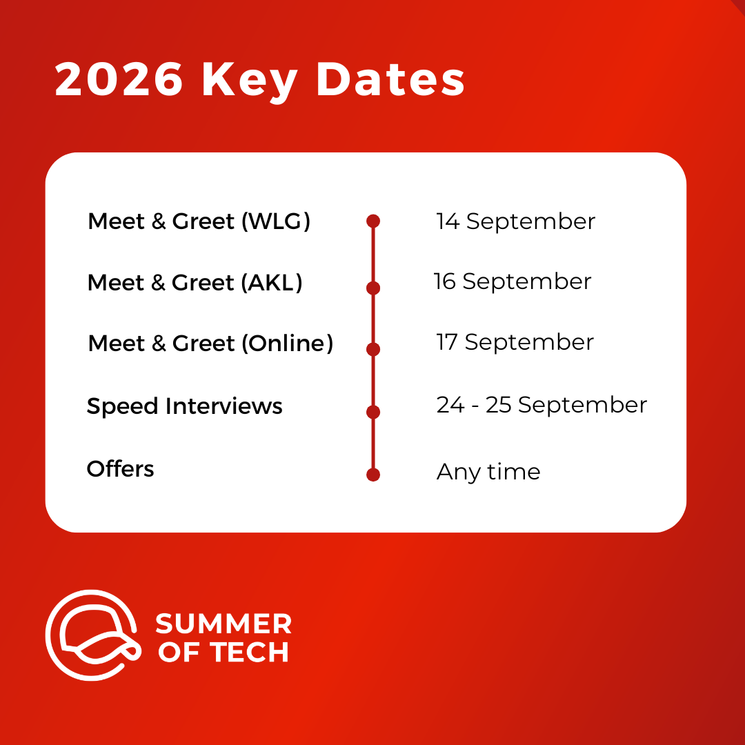 I am eligible as a candidate for Summer of Tech, because I have a current student ID from an Aotearoa New Zealand tertiary institution OR I finished study at an Aotearoa New Zealand tertiary institution less than 12 months ago.